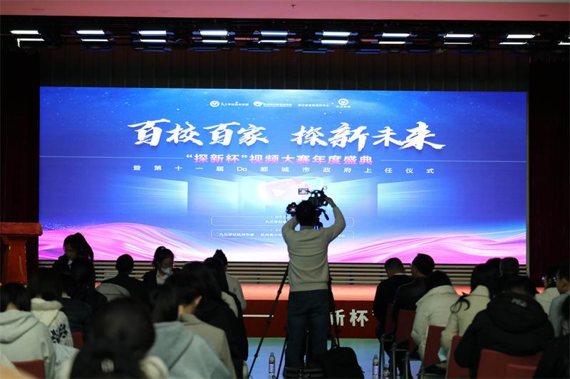 近日,百校百家“探新杯”浙江省大学生视频创作大赛年度盛典在杭州圆满落幕。这场以新质生产力发展为核心主题的赛事,不仅是一次青年创意与科技视野的集中展示,更成为一堂连接课堂学习与科技前沿的生动实践课。活动吸引了全省20余所高校的300余名师生代表齐聚一堂,共同见证青年一代如何用镜头语言描绘浙江的创新图景。