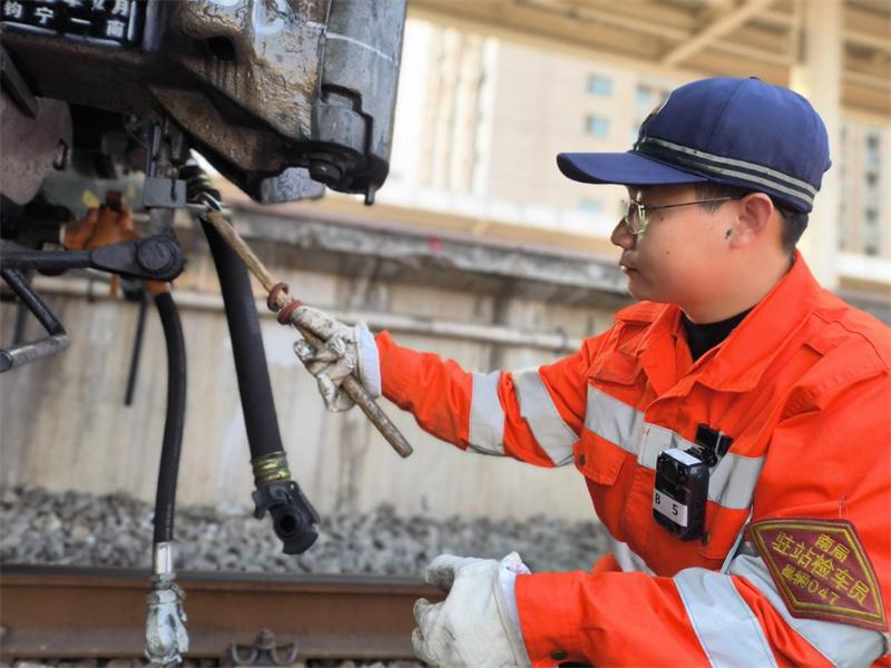 为做好冬季旅客列车防寒工作,南铁南昌车辆段客列检车间开展冬季客车惯性故障预防和应急处置强化培训,制定扫雪除冰应急预案,严格落实列车制动机试验工作,结合低温条件下列车技术状态特点,组织现场职工加强对制动管系、风管接头的检查,做好连挂机车前的排水工作,防止制动装置积水结冰,及时发现和消除影响旅客列车运行安全隐患,确保运输安全。(任栋兴)