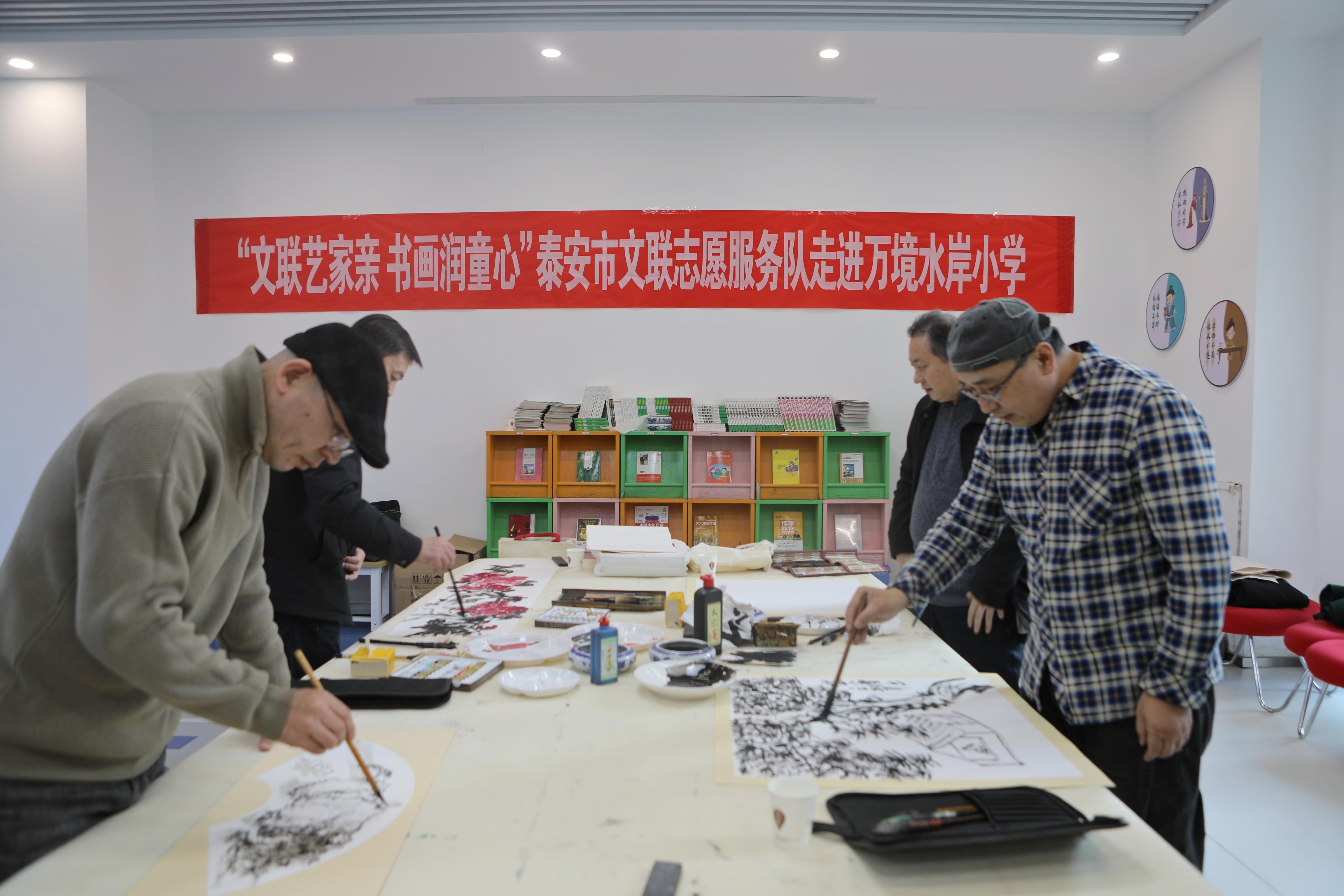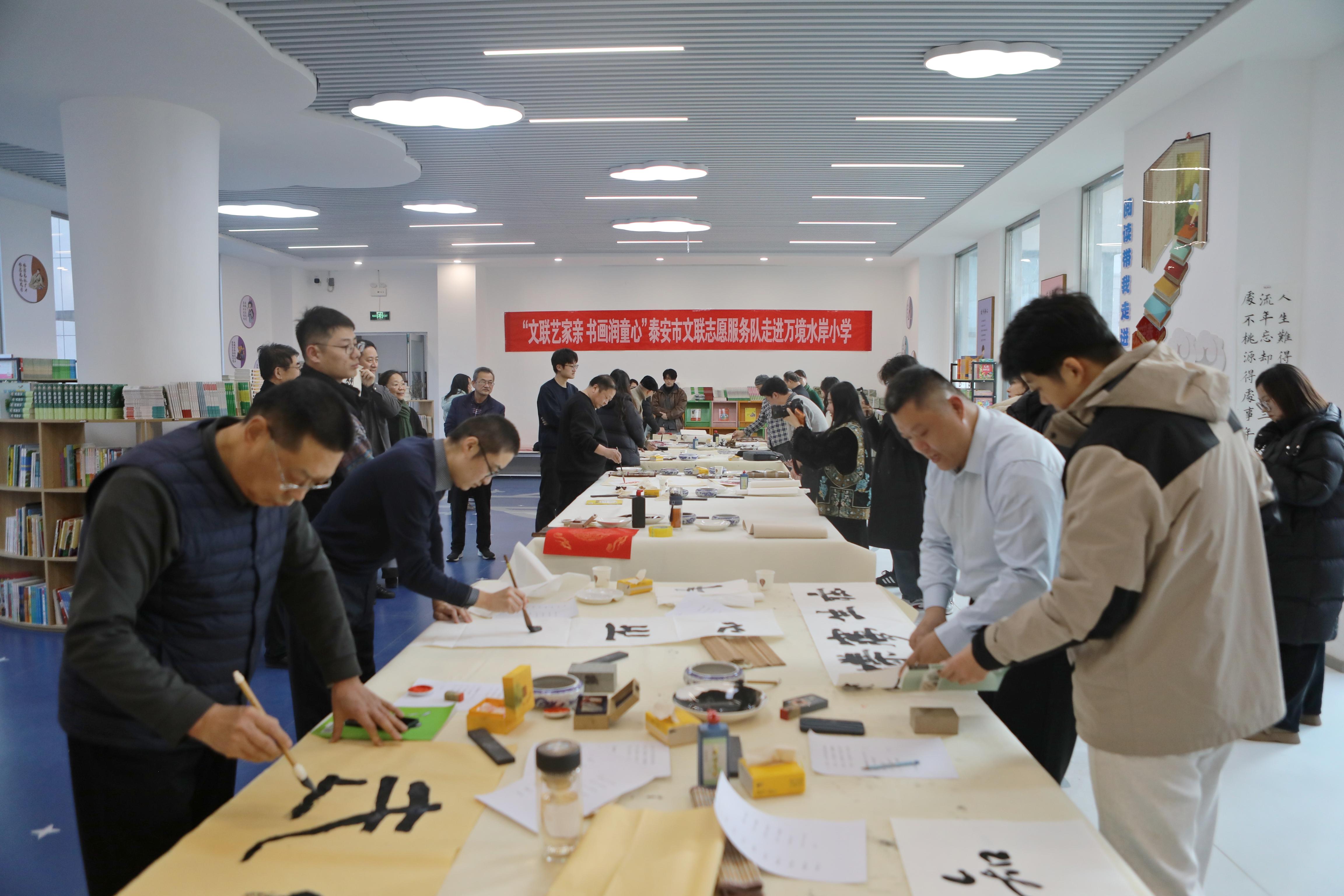 鲁网12月19日讯为弘扬中华优秀传统文化,进一步提升师生艺术素养与审美情趣,12月18日,泰安市文联志愿服务队走进泰安市实验学校万境水岸小学开展“文联艺家亲 书画润童心”活动。活动由市文联党组书记、主席、二级巡视员鹿锋带队,市文联协会部副主任刘志宇、市书协主席倪和军、市美协主席逯建民以及十位书画名家共同参与。