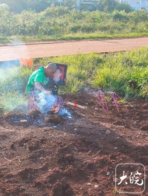 2024年一审开庭前,李海玉祭拜弟弟