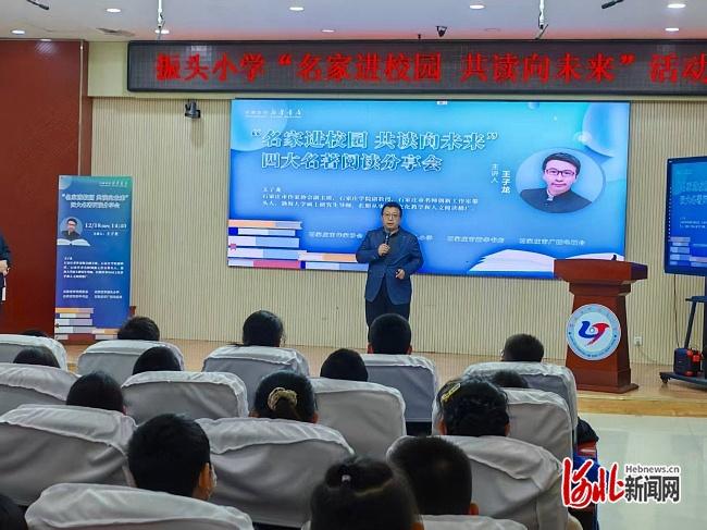 河北新闻网讯(柯蕾 闫金金)近日,石家庄市振头小学举办了“名家进校园 共读向未来”活动。此次活动特别邀请了石家庄市作家协会副主席、石家庄学院副教授王子龙老师为大家开展《四座文峰观沧海——四大名著导读》讲座。