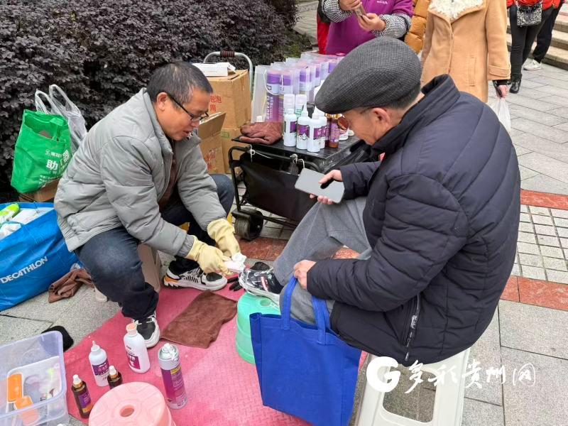 在健康关怀区,工作人员为居民测量血压,检查口腔健康,还提供专业的采耳服务。生活服务区同样人气十足,磨刀师傅手法娴熟,砂轮转动间,一把把菜刀重新变得锋利。旁边的风扇清洗摊位上,工作人员仔细拆下扇叶,浸入泡沫水中,再用软布逐片擦洗。