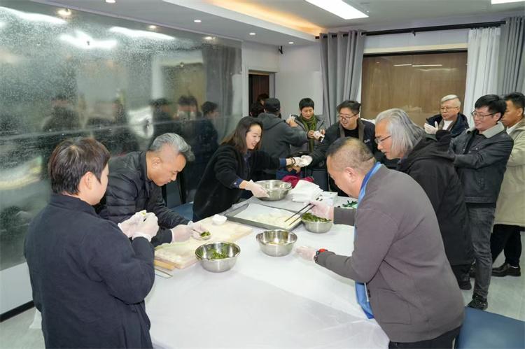 活动现场,墨香、茶香与饺香交融萦绕,相得益彰。书画界同仁及艺术爱好者欢聚一堂,沉浸于多元化的文化体验之中:有的挥毫泼墨,现场切磋创作技艺;有的驻足展品前,细致观摩、交流心得;有的围坐品茗,畅叙艺术与情谊;更有一同挽袖包饺,在协作中感受团圆暖意。活动充分展现了冬至节气所蕴含的人文温度与艺术雅趣,生动诠释了“冬至大如年,人间小团圆”的传统内涵。