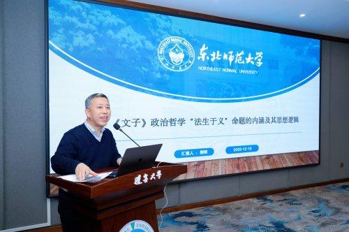 东北师范大学荆雨教授以《<文子>政治哲学“法生于义”命题的内涵及其思想逻辑》为题,指出应重视中国传统政治哲学中“敬天、明德、保民”的原发性与原初性。在战国中后期法治主张与思想融合背景下,《文子》提出“法生于义”命题,“法生于义”与“义生于众适”“众适合乎人心”一起,在其思想内部合乎逻辑地展开了关于法之性质与内涵的整体主张。