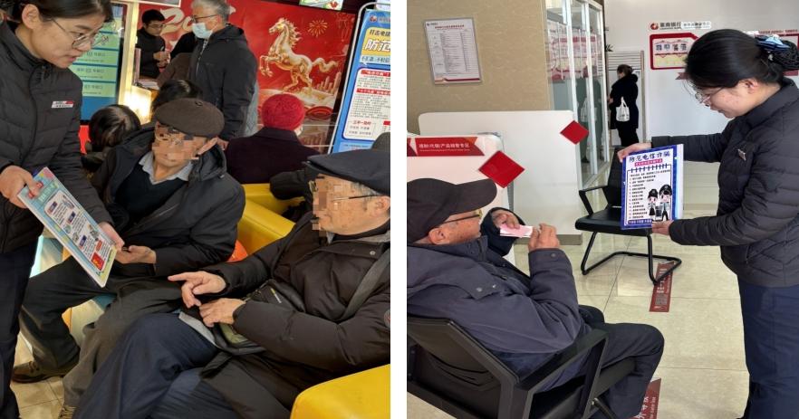 莱商银行泰安高新区支行工作人员结合近期高发诈骗案例,向厅堂等候客户精准讲解反诈知识,重点聚焦近期冒充客服退款、冒充公检法办案、刷单返利、虚假投资理财、冒充亲友借钱等五类高发骗局,拆解诈骗分子惯用套路。在与客户交流的同时,工作人员将多起真实案例告知客户,例如近期有客户轻信“快递客服”赔偿谎言,点开陌生链接泄露银行卡信息和验证码导致资金被盗;还有客户被“高额理财返利”吸引,投入大额资金后平台失联,最终血本无归,直观的案例让在场客户深刻认识到诈骗的隐蔽性和危害性。