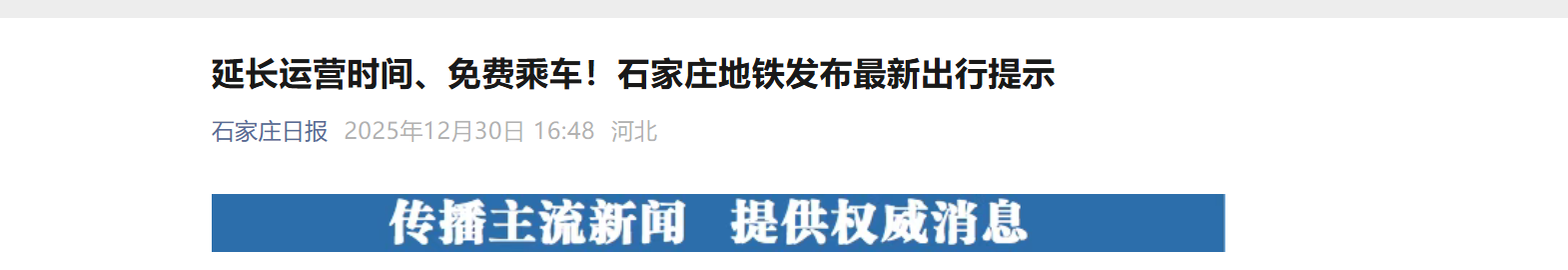 2026年元旦假期即将来临,为满足广大乘客假日期间出行需求,以及保障元旦当天长跑活动顺利开展,石家庄地铁将采取运营调整保障措施,具体如下: