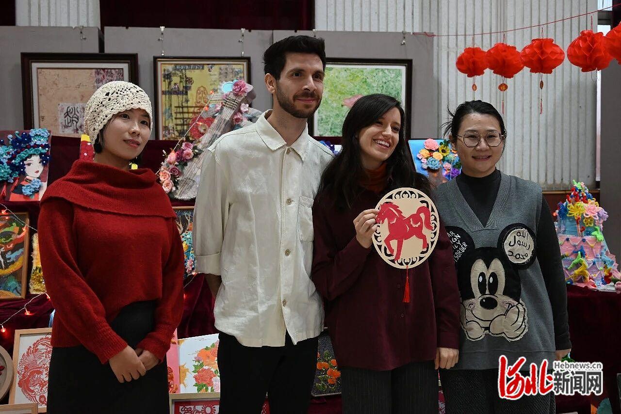 晚会现场精心设置的“文化长廊”成为中外文化交流的窗口。剪纸、书法、猜灯谜等河北民俗体验区前人头攒动,琳琅满目的特色饰品、精巧雅致的手工制品与栩栩如生的国画作品,让外籍教师和留学生沉浸式感受中国传统文化魅力。河北省科技厅为外籍专家、留学生准备的中国特色糕点等新年礼物,更让大家感受到浓浓的暖意。