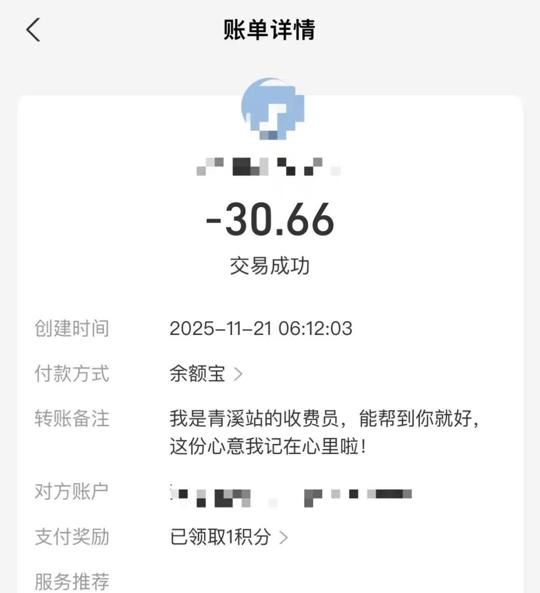 更是司机坚持现场转账归还