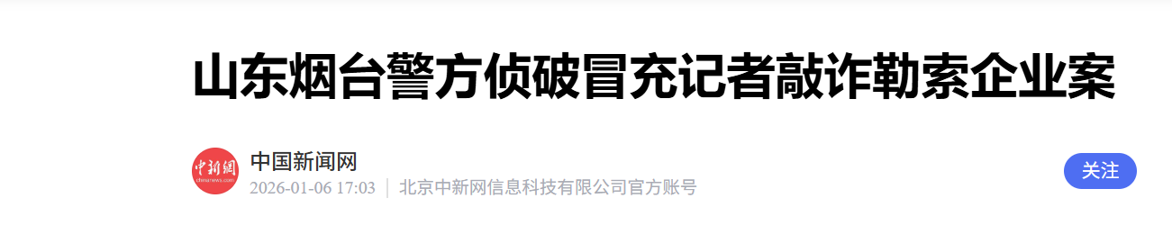 中新网烟台1月6日电(王娇妮赵勇进方毅)记者6日从烟台警方获悉,烟台莱州市公安局近日侦破一起冒充记者敲诈勒索企业案,涉案10名犯罪嫌疑人已被依法提起公诉。