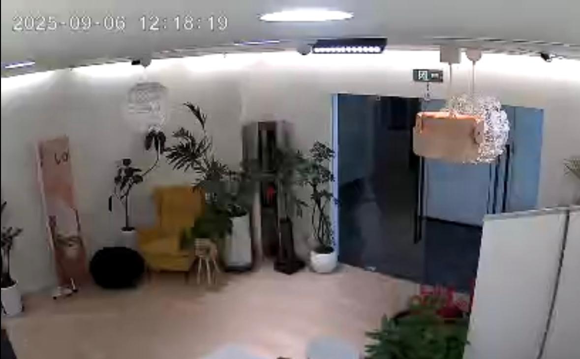 小航向记者提供的监控视频显示,小航的父亲王先生在进入展厅时,径直撞在了半开的玻璃门上,随后被反弹倒地,后脑磕在后方墙壁上。小航称,事发地楼道灯光昏暗,涉事玻璃门仅配有把手,无任何防撞警示标识,且处于半开半关状态,肉眼难以分辨。且在其父亲摔倒后,工作人员未第一时间告知家属相关情况。