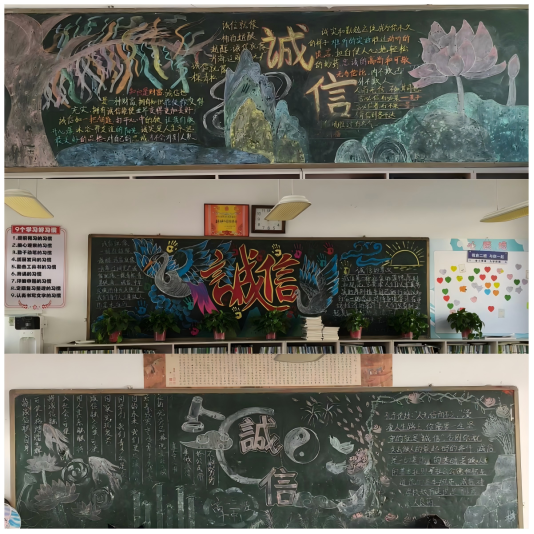 一墙一世界,一笔一乾坤。教室后方,主题黑板报构成动态育人阵地。高一级部是每月更新的德育主题板报,从“诚信立身”到“家国情怀”,以图文传递核心价值观;高二高三级部则是应对合格考与高考的“励志加油站”,倒计时、方法指导与个人誓言交织,成为备考路上最温暖的陪伴与最有力的鞭策。