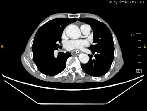 家住临沂市兰陵县的刘爷爷不慎误吞鸡脖,连续4天尝试多种办法始终无法自行取出,已出现吞咽困难及胸痛症状,紧急前往当地医院就诊。CT检查显示,患者食管内异物周围可见气体,考虑为食管壁损伤,且异物位置紧邻左心房,取出风险极高,当地医院建议立即转入上级医院进一步治疗,家属连夜驱车数百里来到青大附院西海岸院区。
