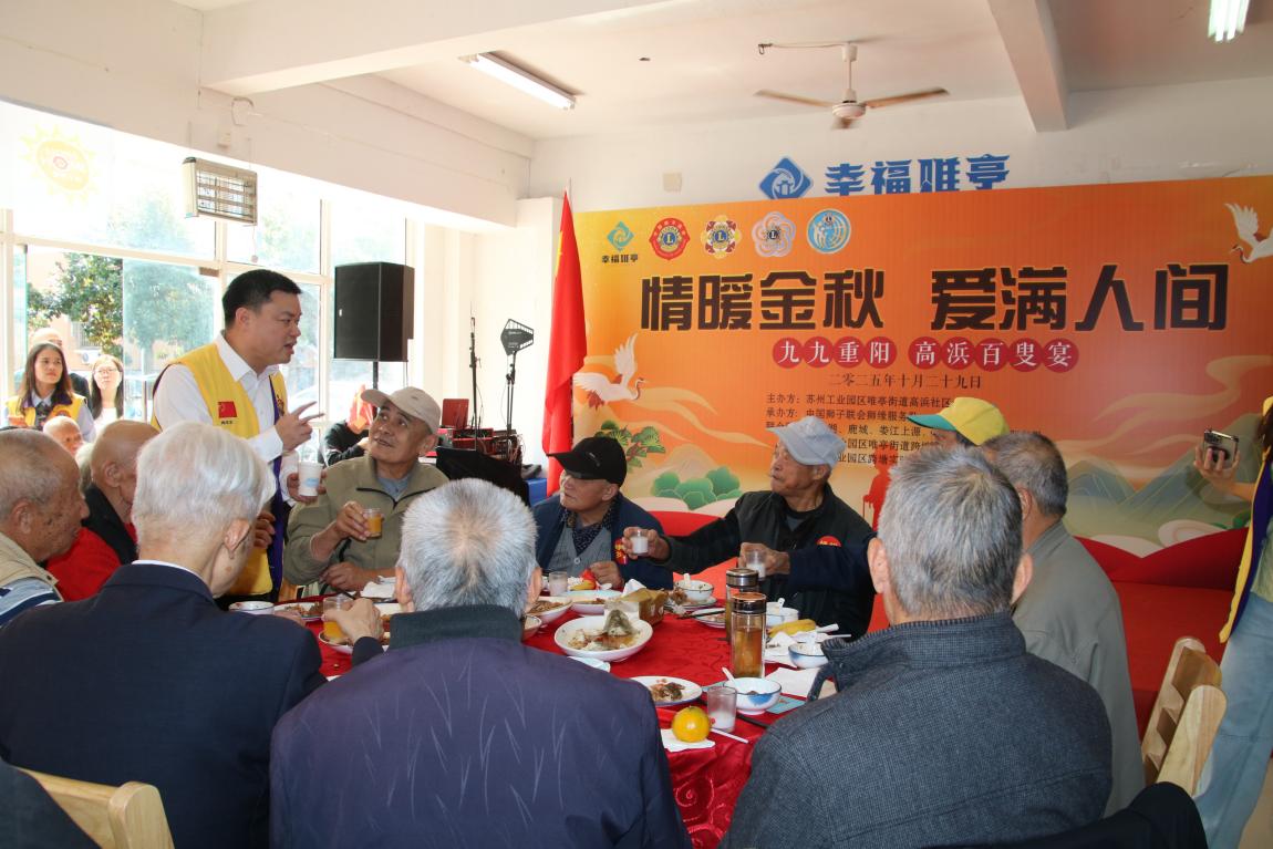 “肖师傅送的腊八粥又香又暖,喝着心里踏实,节日都更有味儿了!”居民李奶奶捧着温热的粥碗,脸上笑开了花。而到了重阳佳节,肖年丰牵头的“百叟宴”早已成了社区的“保留节目”,120位高龄老人、退役军人齐聚一堂,闲聊家常、共叙团圆。社区的“志愿红”与肖年丰带领的“狮子黄”穿梭其间,添菜倒茶、倾听需求。老人们的笑声此起彼伏,让节日关怀变成了一场温暖的“双向奔赴”。