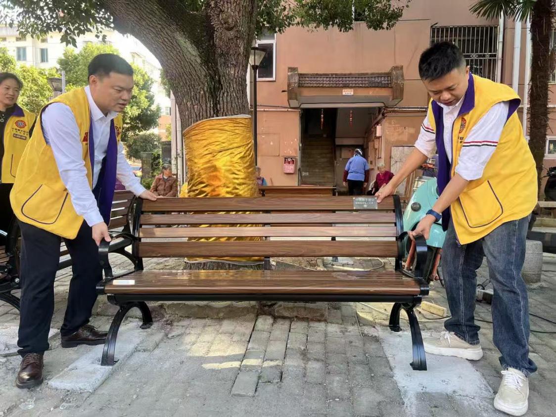 同时,他积极对接中国狮子联会江苏代表处,协调资源、沟通方案。经过多方奔走协调,26个舒适耐用的休闲座椅最终在社区落地。