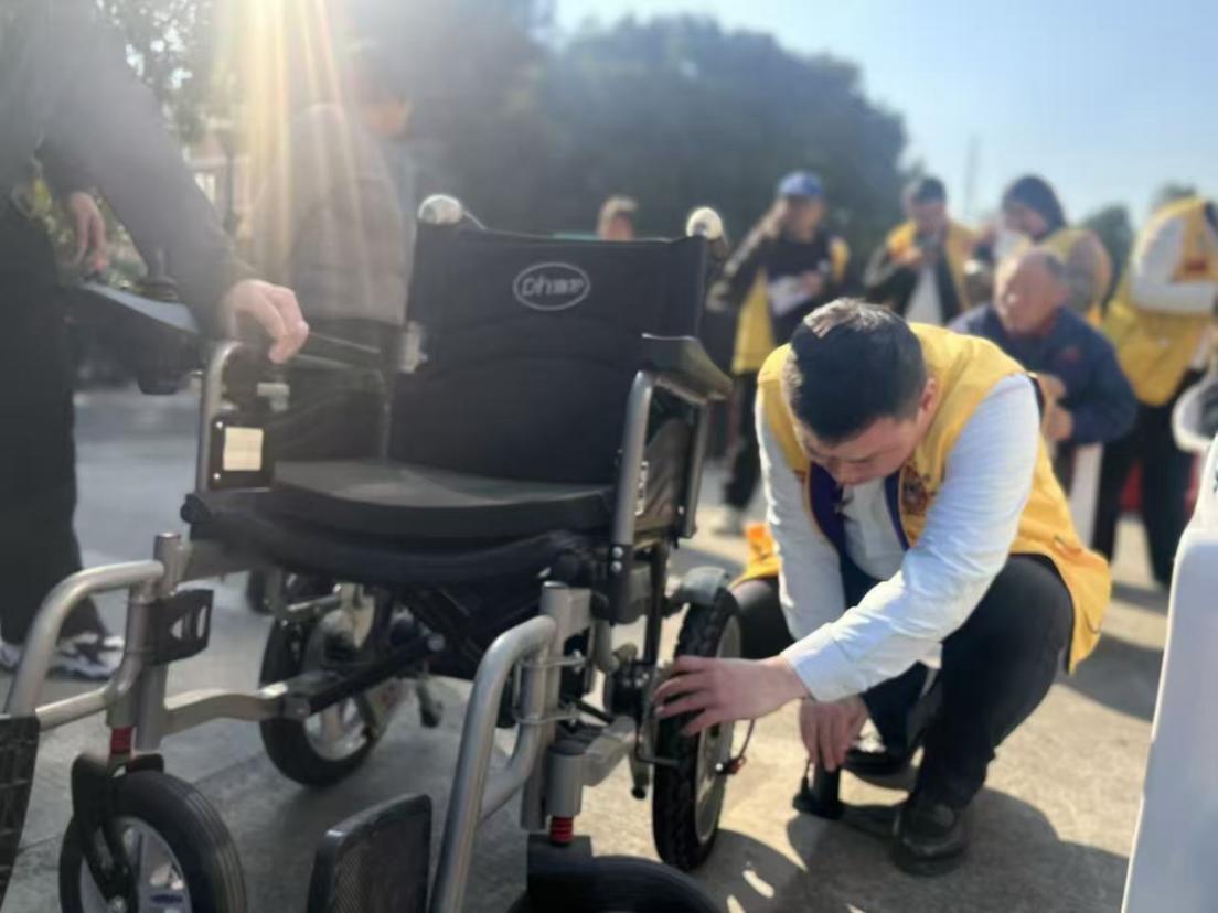肖年丰的暖心,不仅藏在活动和民生小事里,还体现在日常的细微之处。一次社区举办敬老文艺演出,现场一位使用电动轮椅的老人突然发现轮胎漏气,轮椅无法移动,急得满头大汗。正在开展志愿服务的肖年丰看到后,立刻放下手中的活儿跑了过去。
