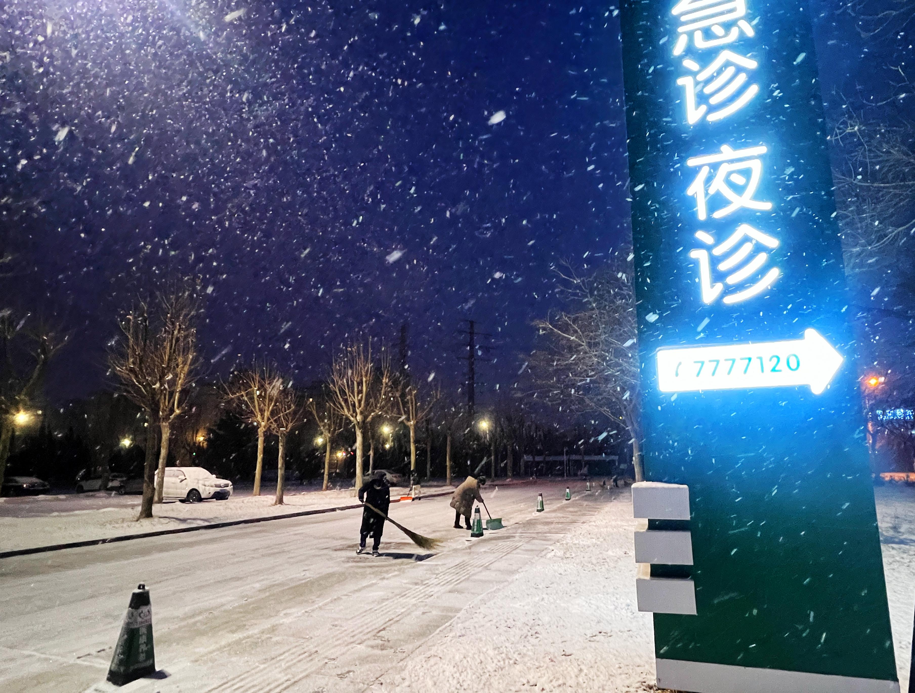 雪越下越密,职工们的额头却渗出了汗珠。他们顾不上拍打身上的雪花,只为能尽早让前来就医的群众踏上安全通畅的道路,充分展示了医院职工高度的主人翁精神与“一心为患”人文情怀。