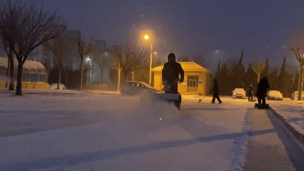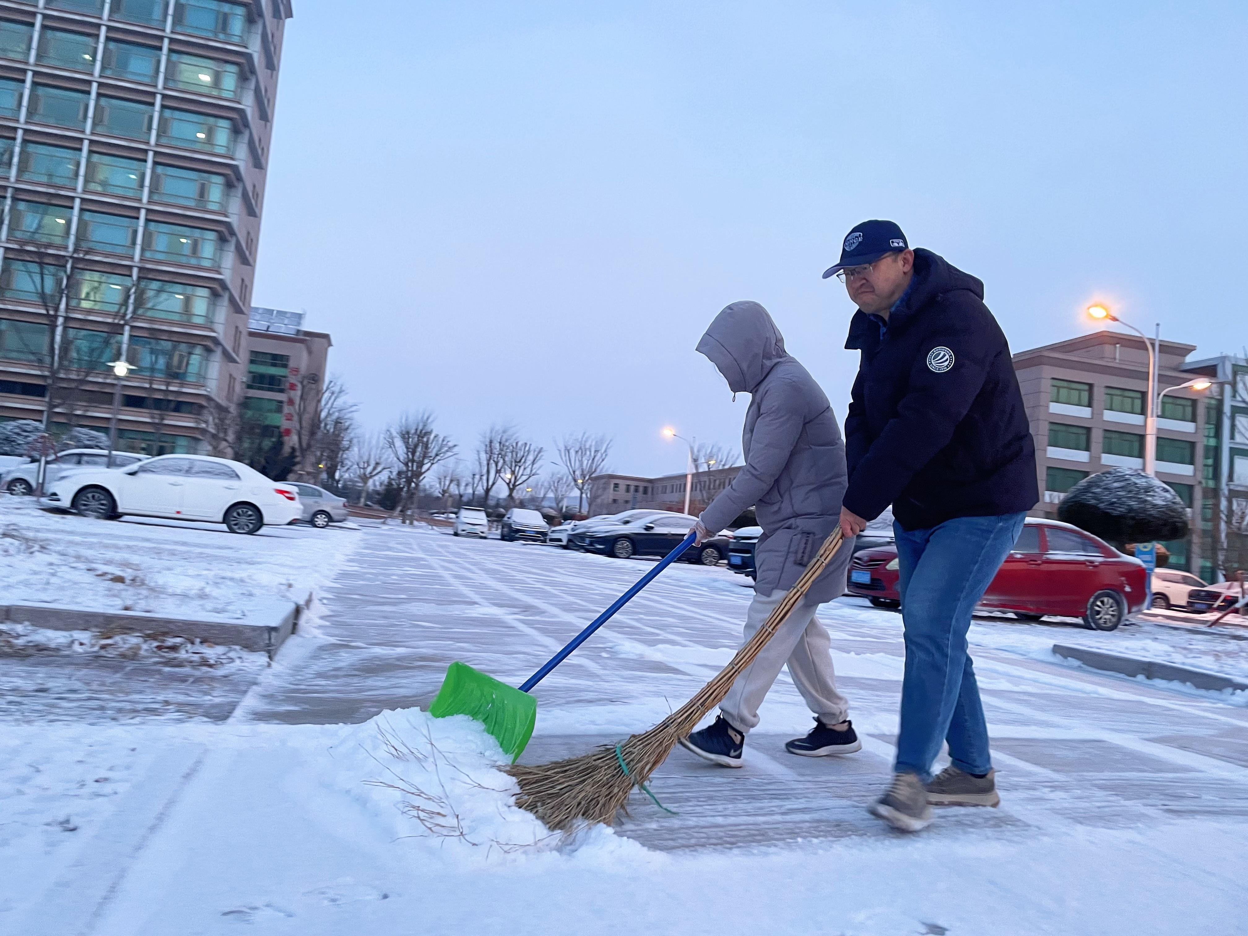 凛冽的寒风中,清扫的身影随处可见。令人动容的是,不少职工家属也主动加入清扫大军,与医护人员并肩作战;有的职工身体抱恙,却依旧带病坚守,不肯退下“火线”;还有的职工不惧路途遥远,一路冒雪赶回医院。扫雪车的轰鸣声与扫帚、铁锨等工具摩擦地面的沙沙声交织在一起,打破了凌晨院区的宁静,勾勒出一幅热火朝天的奉献图景。