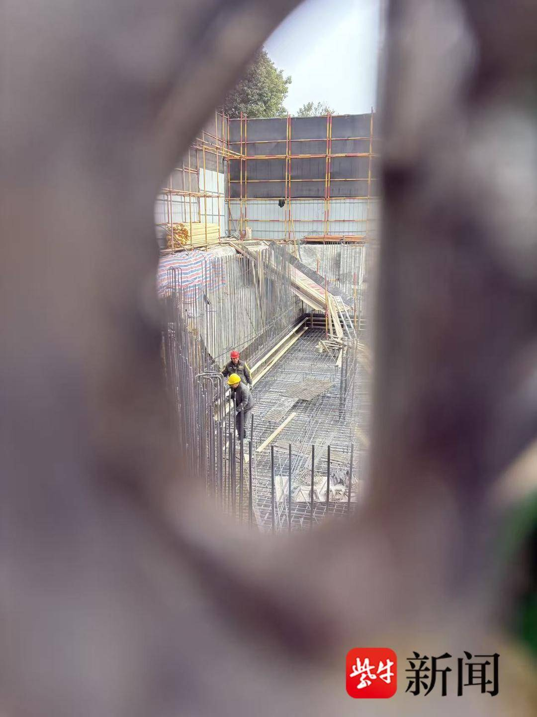 随后,记者通过工地墙缝观察,确认里面仍在施工,且建设比1月8日有所进展,在工地周边也确实未看见《责令停工及接受调查通知书》。