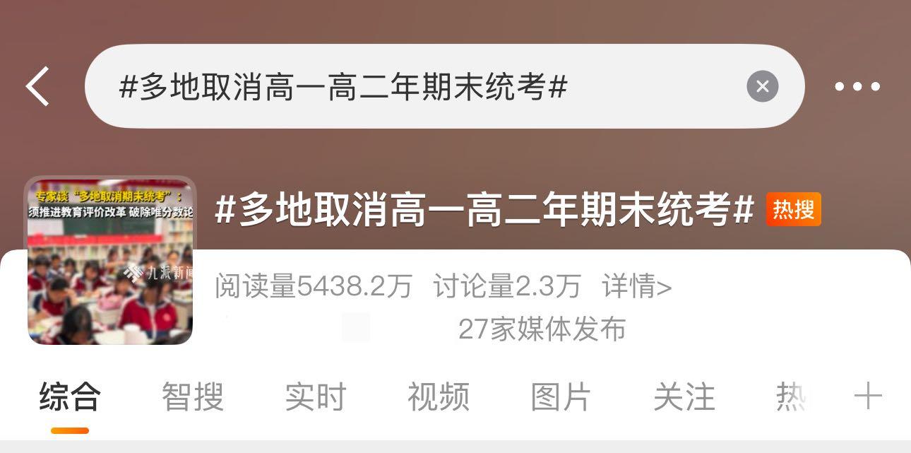 “多地取消高一高二期末统考”的话题冲上热搜