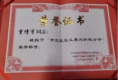 鲁网1月15日讯(记者 魏萱 通讯员 李成修 侯瑞)近日,烟台毓璜顶医院莱山院区手术一部护士贾倩宇收到了青岛市市北区委政法委寄来的“市北区见义勇为积极分子”荣誉证书。“真没想到这么一件小事,还能获得官方表彰,挺惊讶也有点不好意思。”谈及这份荣誉,贾倩宇朴实的语气中带着一丝腼腆。