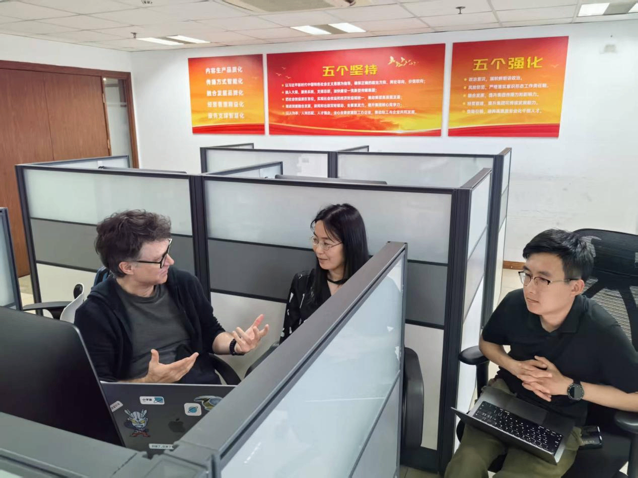 △监制罗飞(Arthur Jones)在剪辑室指导影片创作