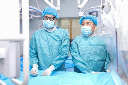 姜文进主任团队拥有全国领先的微创治疗技术,他们并未采用传统开腹手术,而是选择了经右肱动脉入路的无鞘微导管技术完成的子宫动脉栓塞术。手术中,医生单独使用直径仅0.8毫米的微导管,从刘女士右手臂的肱动脉穿刺,伤口仅有针眼大小。导管沿血管“潜行”至盆腔,精准锁定为子宫肌瘤供血的血管分支后,注入特殊栓塞微粒,切断肌瘤的“粮道”。这样一来,肌瘤会因缺血缺氧逐渐萎缩变小,相关症状也会完全消除,而正常的卵巢血供则不受任何影响。