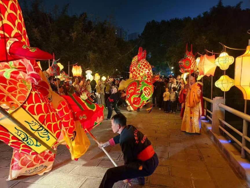1月24日18:30-20:00,两场《鱼跃龙门》大型非遗鱼灯舞巡游将点燃全场热情。数十名舞者手持彩绘鱼灯,于大成殿广场起势,踏着鼓点穿行于街巷之间,光影摇曳中尽显“鱼跃灯舞”的灵动之美。市民与游客可近距离观赏、互动合影,沉浸式感受这场光影与文化的盛宴。