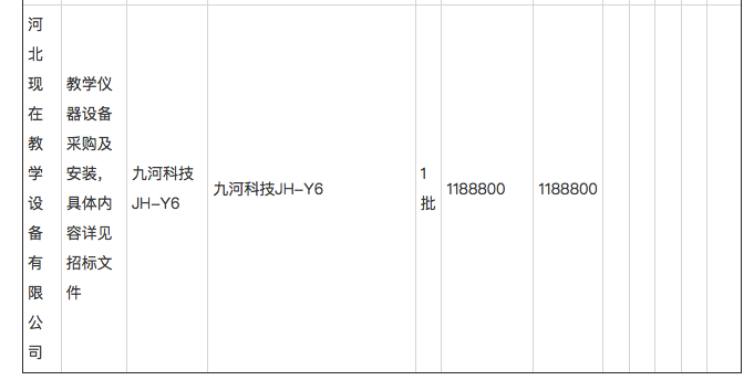 另据2025年肃宁县第一中学教学仪器设备采购项目(一至二标段)中标公告,河北现在教学设备有限公司最终中标金额为1188800元(118.88万元)。
