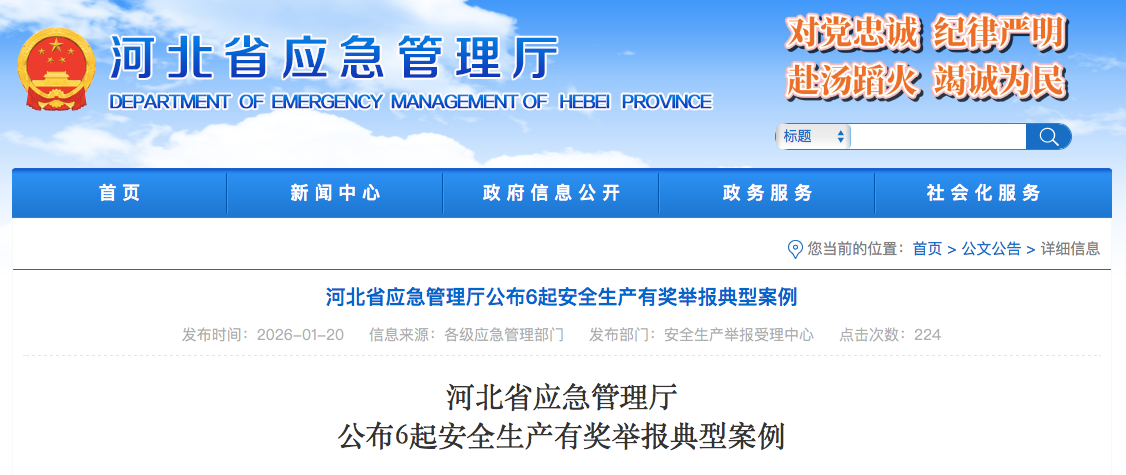 为鼓励社会公众积极参与举报重大事故隐患和非法违法行为,持续提高社会各界关注安全生产的积极性,浓厚社会氛围,提升公共安全社会共治水平,有效助力全省安全生产形势稳定。河北省应急管理厅现公布6起有奖举报典型案例。