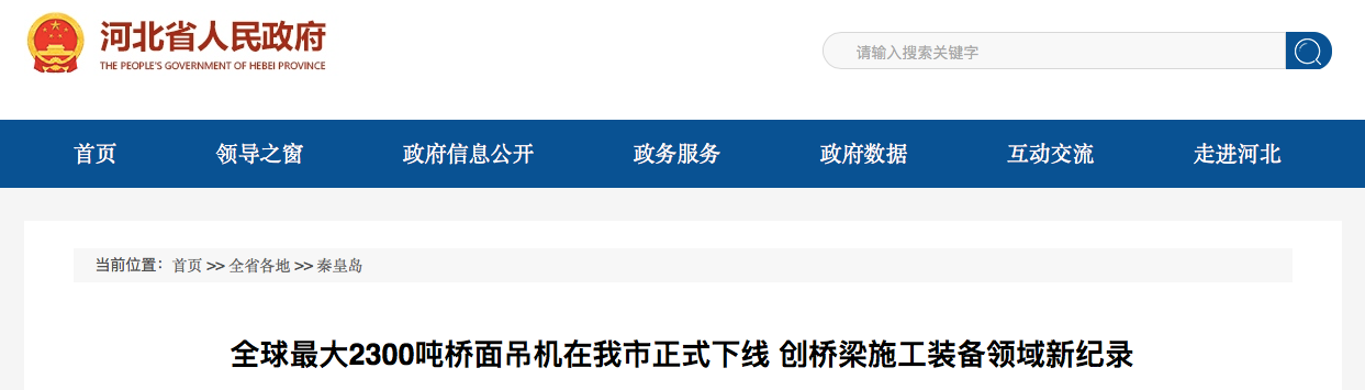 1月16日,全球最大吨位、起重能力达2300吨的智能化桥面吊机在秦皇岛天业通联重工科技有限公司正式下线。该装备将用于荆州李埠长江公铁大桥建设,标志着我国在大型桥梁施工装备领域实现新突破。