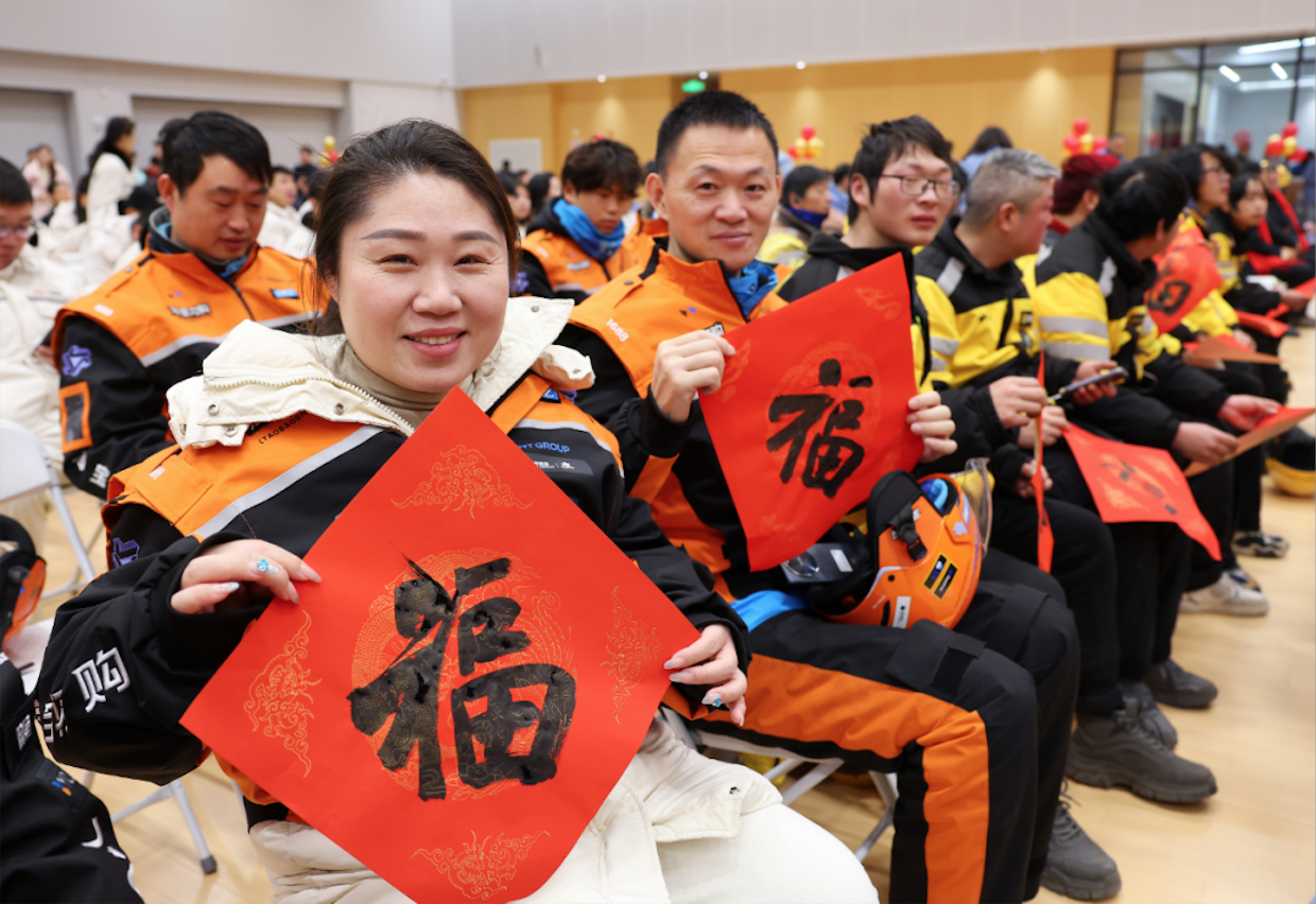 江南时报讯(记者 张雅倩)有江苏省的劳模工匠,也有来自美团、淘宝闪购等平台的新就业形态劳动者,还有来自南京钢铁集团、中国中车等企业的一线工作者……1月23日,江苏省300多名来自各行各业的劳动者齐聚南京喜迎新春、共接福气。来自省书协的30多名书法名家铺纸研墨、即席挥毫,将一幅幅饱蘸情意、墨韵生动的“福”字送到劳动者手中。大家手捧墨香四溢的“福”字,脸上洋溢着笑容,纷纷感慨:“年味儿越来越浓了。”