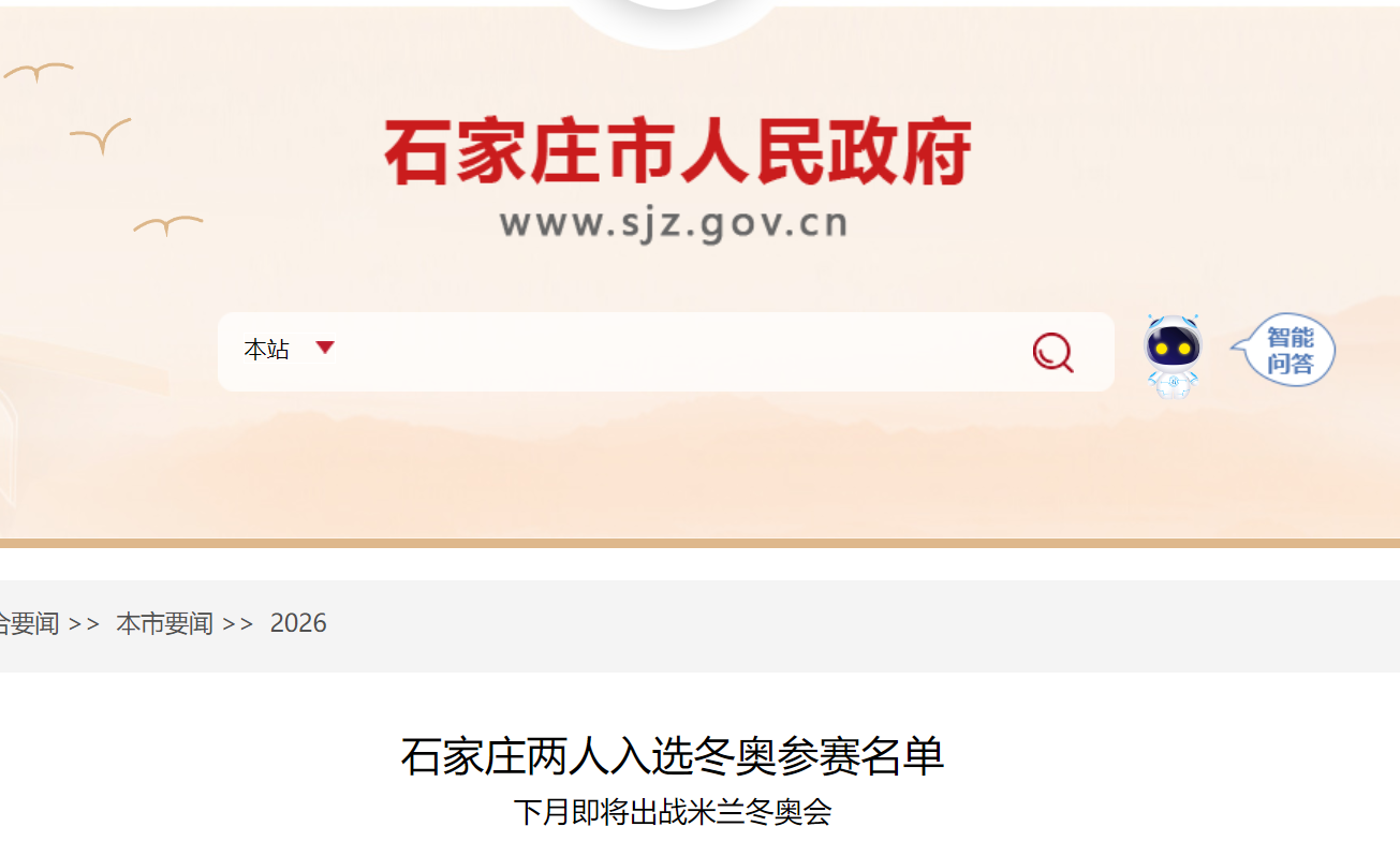 1月23日,国家体育总局冬季运动管理中心在官网公示了由中心选拔的124名参加米兰冬奥会的运动员名单。石家庄培养输送的李文淏和盛海鹏入选,这将是石家庄运动员第一次登上冬奥会的赛场。