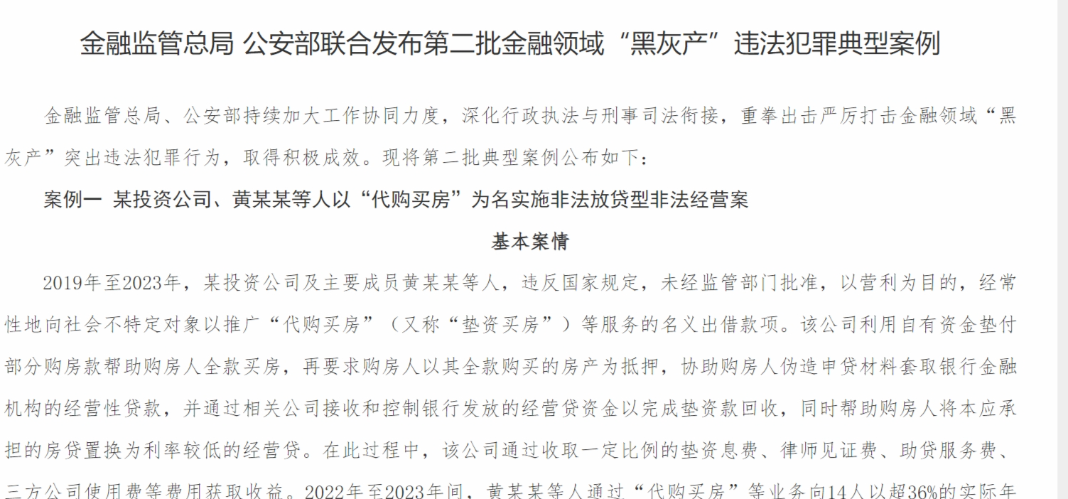 案例一某投资公司、黄某某等人以“代购买房”为名实施非法放贷型非法经营案