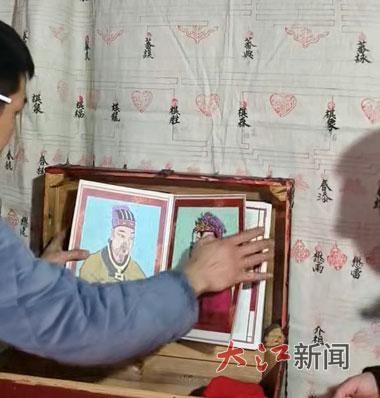 老屋里,乡邻亲友渐渐聚拢。几位叔伯小心翼翼展开卷藏的族谱,合力将它悬挂在堂屋正中。