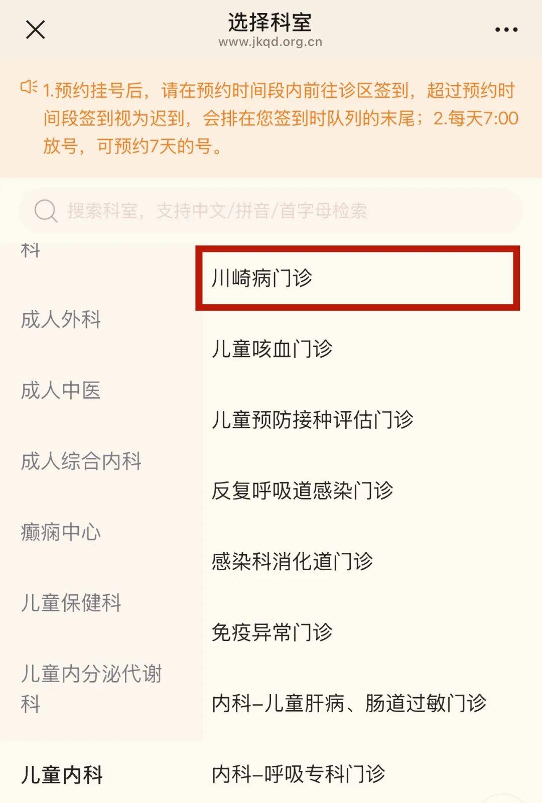 预约方式:关注官方微信公众号→辽阳西路院区→儿童内科→川崎病门诊
