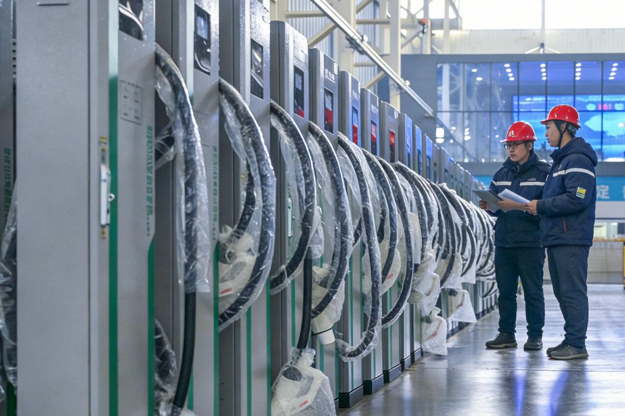 1月20日,邯郸市永年区工业园区,河北高晶电器设备有限公司工人检测即将出厂的充电桩设备。河北日报记者 田明摄