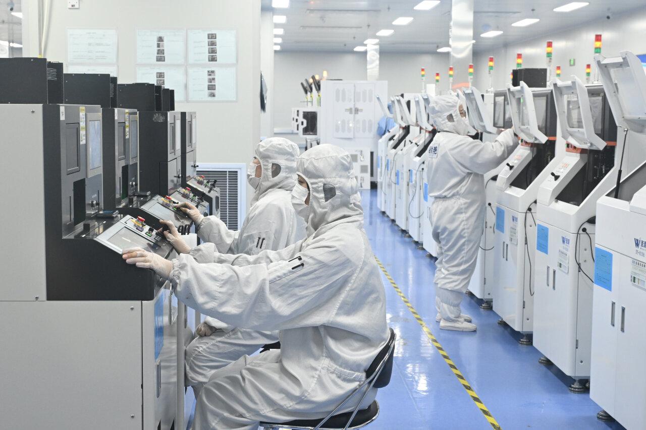 3月2日,河北圣昊光电科技有限公司芯片测试车间,员工在生产线上作业。河北日报记者 史晟全摄