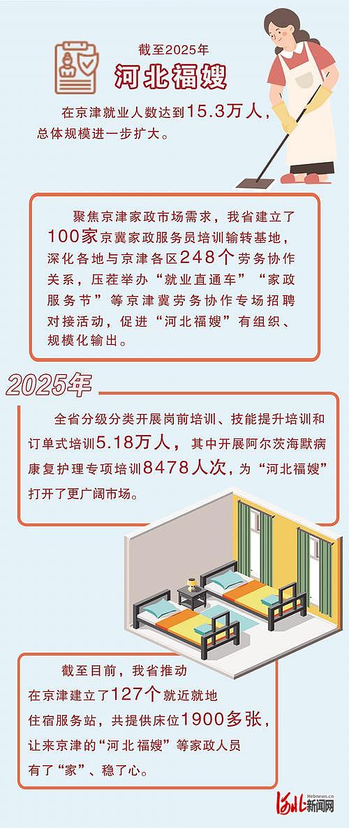 截至2025年,“河北福嫂”在京津就业人数达到15.3万人,总体规模进一步扩大。凭借专业的服务和良好的职业素养,“河北福嫂”走俏京津家政市场。