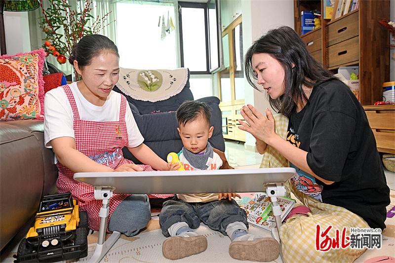 2025年5月8日,“河北福嫂”(左一)在北京雇主家中照看宝宝。(河北日报资料片)河北日报记者 张昊摄