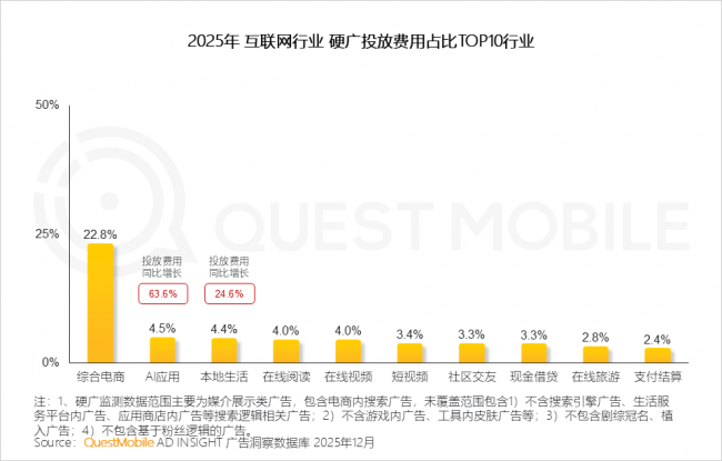 Ⅲ. 互联网行业受新兴赛道广告主及跨界竞争影响,投放呈现结构性增长,AI应用行业、本地生活行业广告主投放活跃度上升