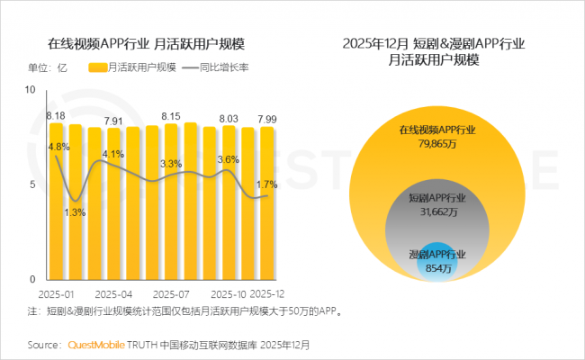 Ⅰ. 在线视频行业全年月活用户规模在7.9亿–8.2亿区间震荡,短剧逐渐成为主流内容形态,AI技术赋能的漫剧赛道正成为新增长点