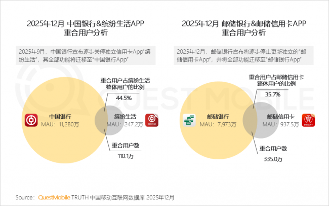 中国银行和邮储银行在2025年下半年相继关停独立信用卡App,提升主App的综合服务能力,强化用户黏性。