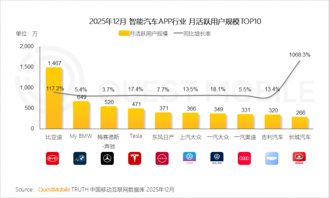 5.6 比亚迪领跑智能汽车APP市场,长城汽车增速迅猛,头部品牌加速构建车机生态与用户运营能力