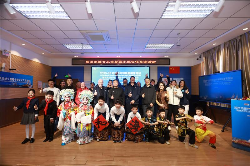 鲁网3月11日讯春和景明,海风送暖。3月10日上午,青岛文登路小学的校园里彩旗飘扬、笑语盈盈,克利伯环球帆船赛青岛站船员文化交流活动在此温馨启幕。克利伯环球帆船赛船员代表一行40人与文登路小学师生齐聚一堂,在碧海之畔谱写了一曲“航海精神”与“传统文化”交融的动人乐章。