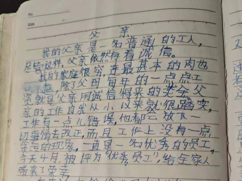 在一篇名为《父亲》的日记中,谈磊提到,父亲是一名普通工人,虽然家里条件不太好,但一直让他引以为傲,因为父亲为人诚信,工作认真,一直是优秀员工。在另一篇日记中,谈磊更是直接写道:“如果你失去诚信,那么天底下还有什么人又愿意把一切光荣任务交给你呢?”虽然字迹稚嫩,却在字里行间体现了他儿时对诚信这一美好品德的看重与向往。