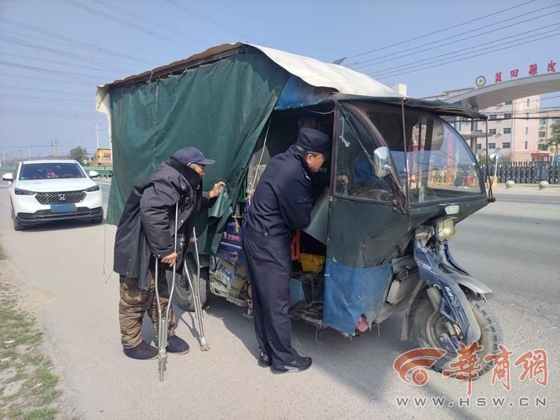 当日上午,洩湖派出所民辅警像往常一样穿梭在辖区乡村道路和主干道,细致排查交通安全隐患。巡查途中,一个不寻常的场景引起了民警的注意——一名老人独自坐在三轮车上,神情焦急地停在路边,车辆无法启动。