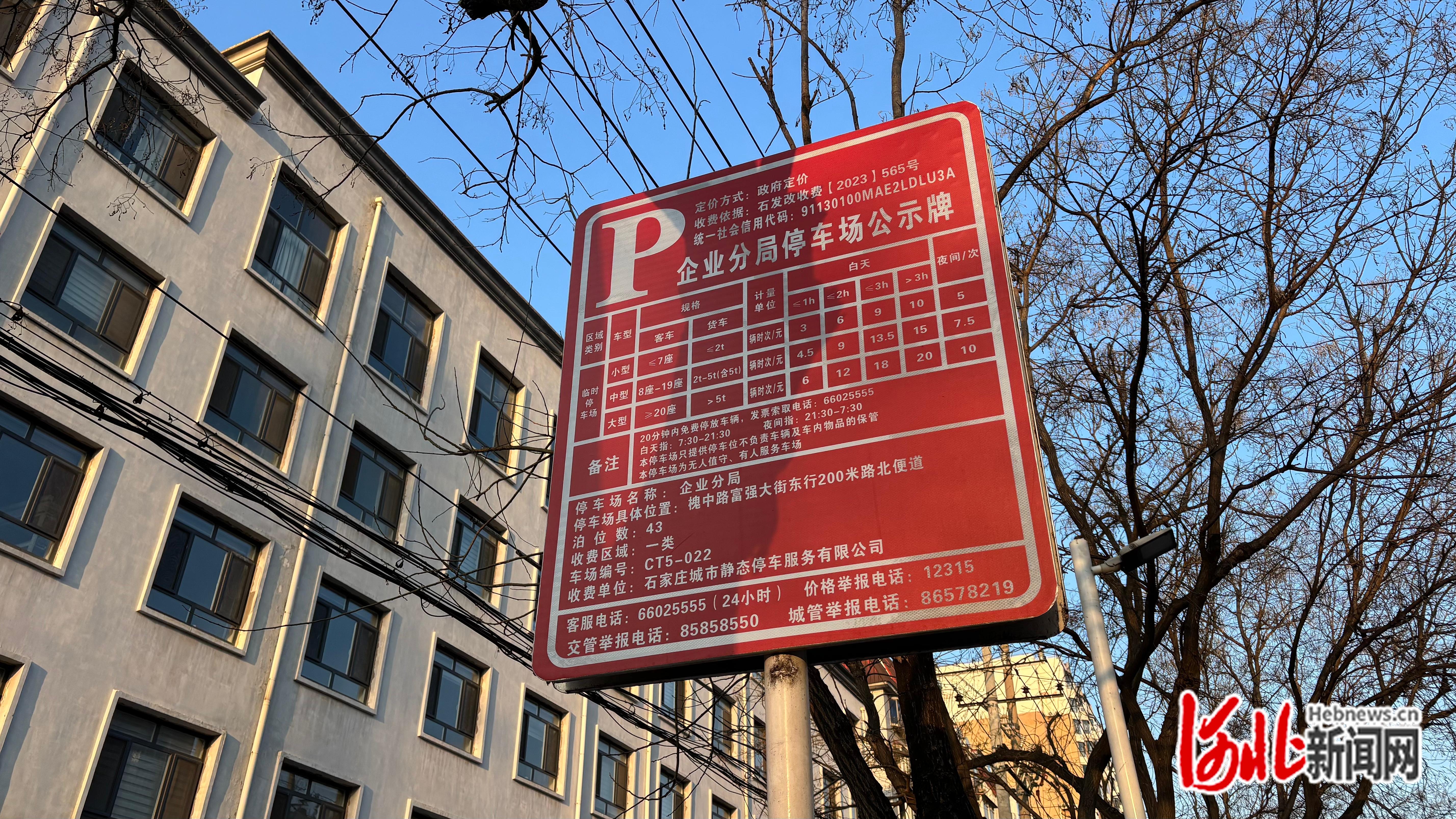 石家庄城市静态停车场收费标准提示牌。白中豪摄