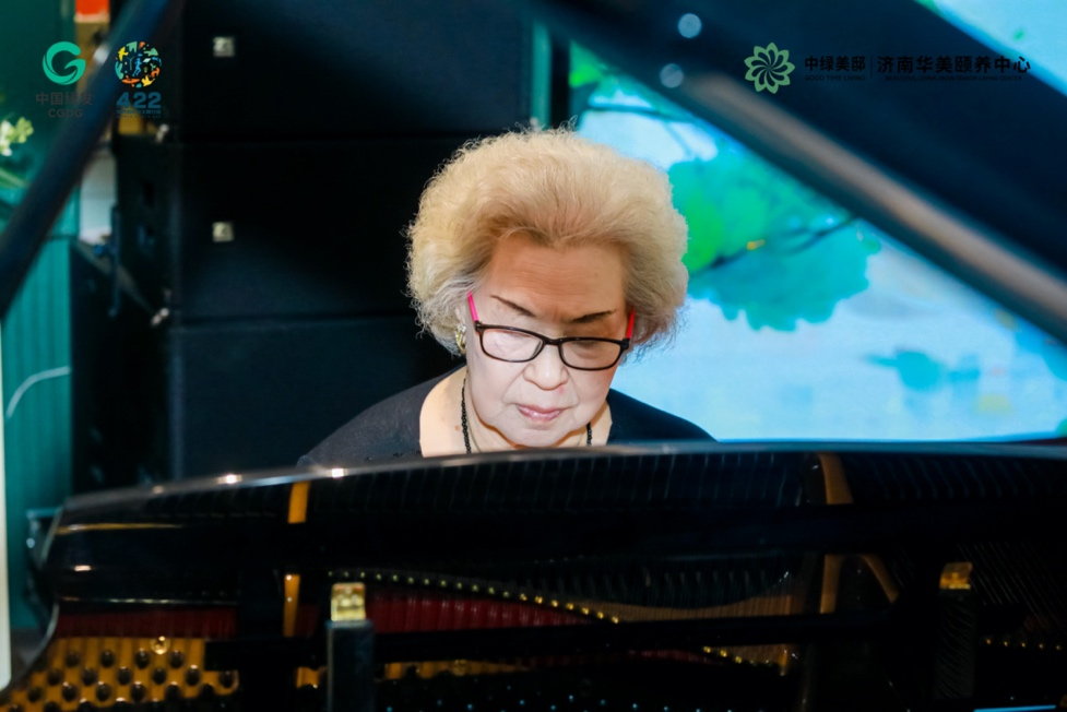 济南华美颐养中心 入住长者在弹奏钢琴