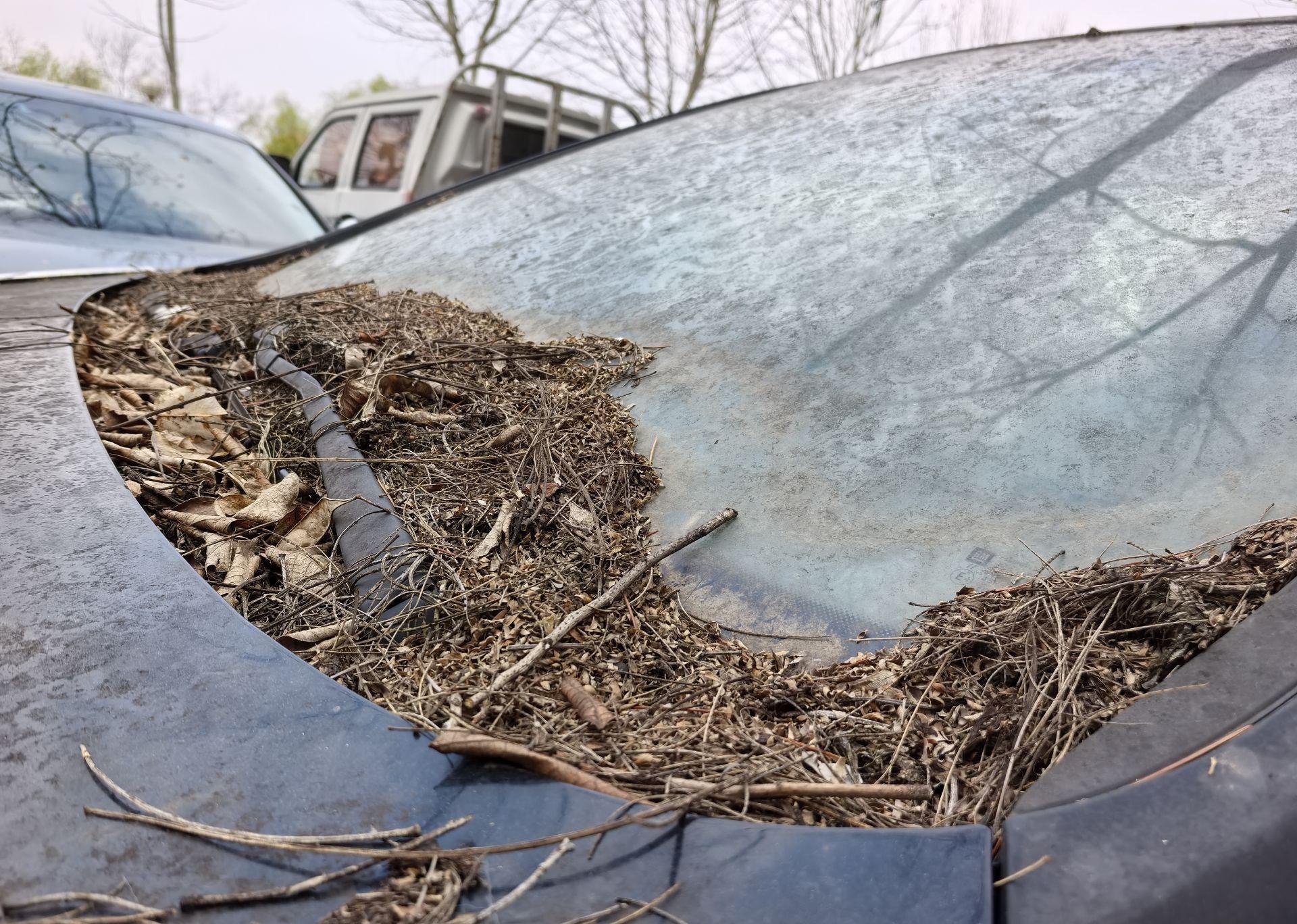 走近观察发现,该车较旧,车身布满了灰尘,车前挡风玻璃和车窗玻璃都结了灰垢,尤其是前挡风玻璃下面落满了树叶、枯枝等杂物,看起来该车在此停放时间不短了。市民表示,这极有可能是“僵尸车”。记者透过车窗玻璃观察,可以看到车内设备基本完好。