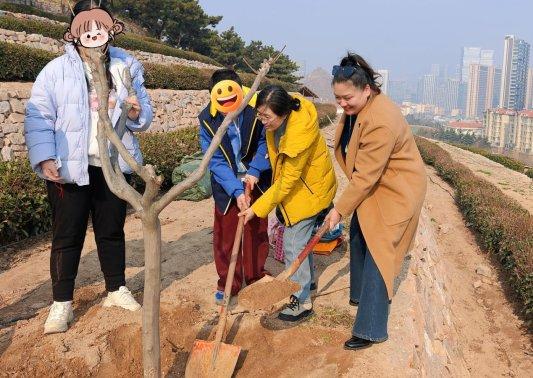 仪式现场没有华丽的布置,却有着最动人的温暖场景。十七位孤独症儿童(常被称为“星星的孩子”)在家长、志愿者及活动工作人员的陪伴下,手持小树苗、铁铲和水桶,认真参与到植树活动中。孩子们笨拙却坚定地挖坑、放苗、填土、浇水,每一个动作都充满了专注与期待,稚嫩的脸庞上洋溢着纯粹的喜悦。这场以绿为名、以爱为纽带的行动,不仅为浮山增添了一抹新绿,更搭建起孤独症儿童与社会沟通的桥梁,深刻诠释了青岛这座城市的包容力与文明高度。